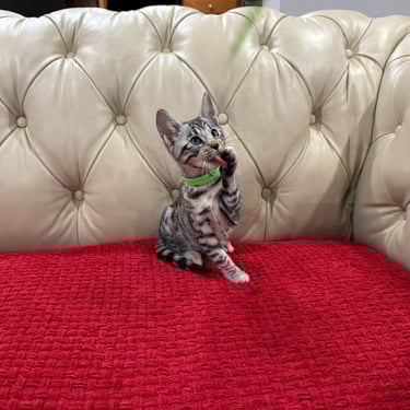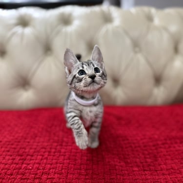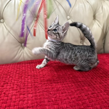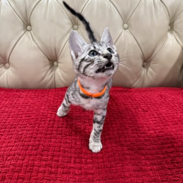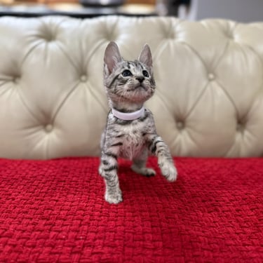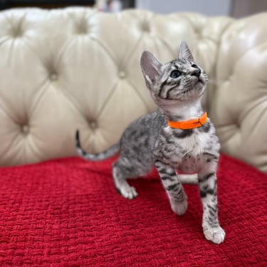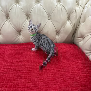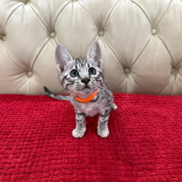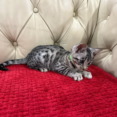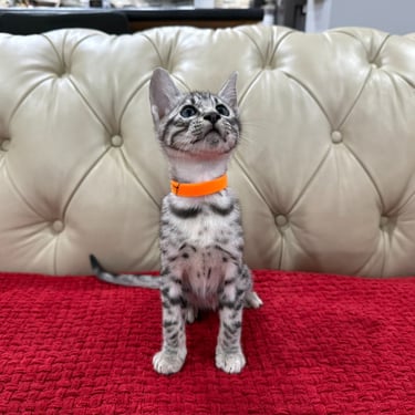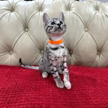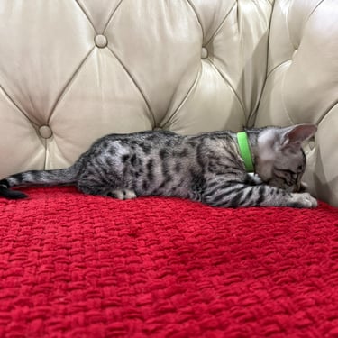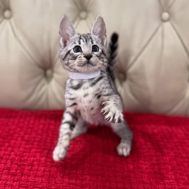 Should you decide to adopt one of our Savannah kittens, we do send you updated pictures so you can watch your Savannah kitten grow and develop. Our Kittens are ready for their forever homes at approximately 12 weeks of age, as we want to ensure each kitten will be physically and emotionally ready for his or her forever home. We require a $600 non- refundable deposit to hold a kitten once you have selected "the one" perfect for you.