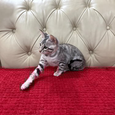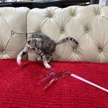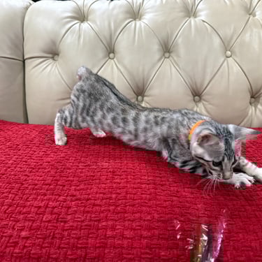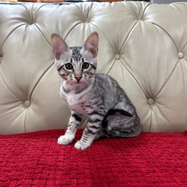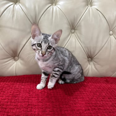Should you decide to adopt one of our Savannah kittens, we do send you updated pictures so you can watch your Savannah kitten grow and develop. Our Kittens are ready for their forever homes at approximately 12 weeks of age, as we want to ensure each kitten will be physically and emotionally ready for his or her forever home. We require a $600 non- refundable deposit to hold a kitten once you have selected "the one" perfect for you.